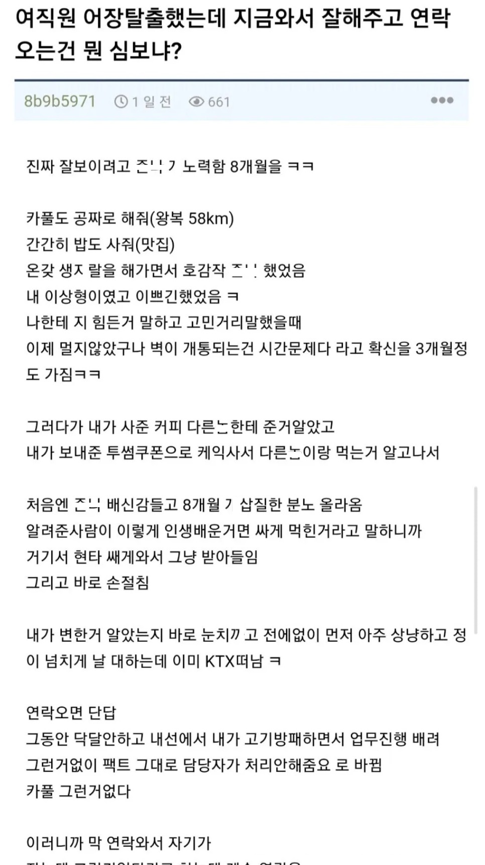 8개월만에 어장 탈출하니까 여자한테 계속 연락 온다는 남자의 진실
