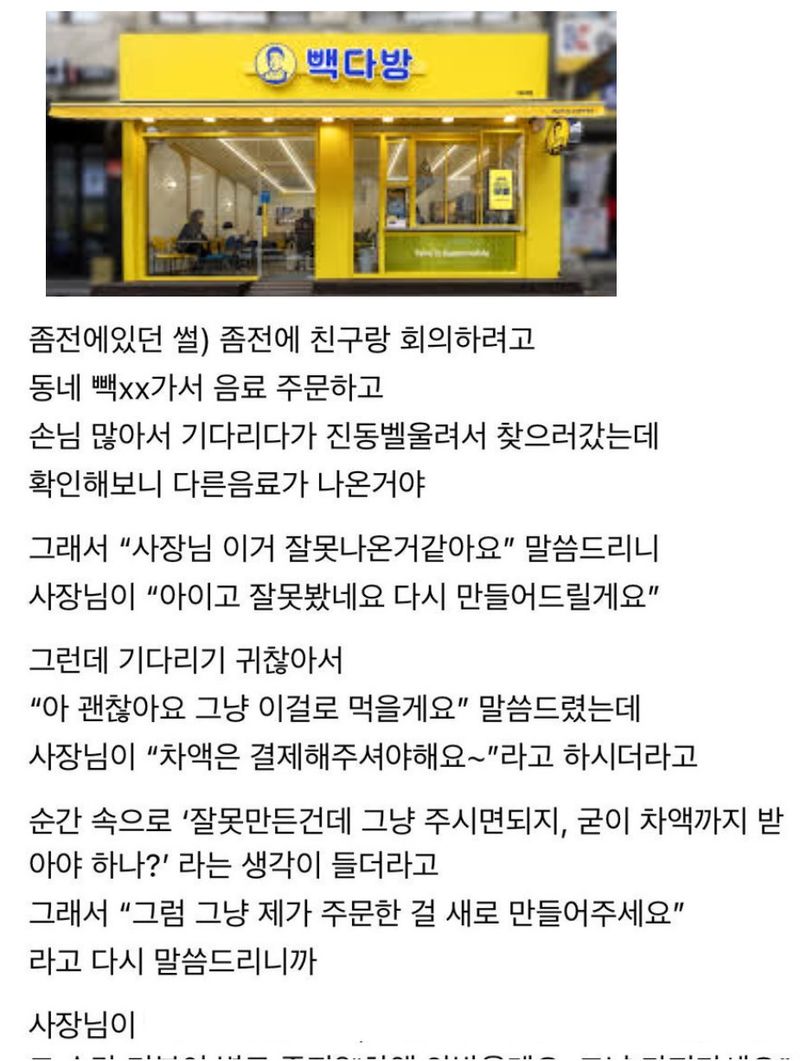 음료 제조 실수한 카페 사장님의 선택.jpg
