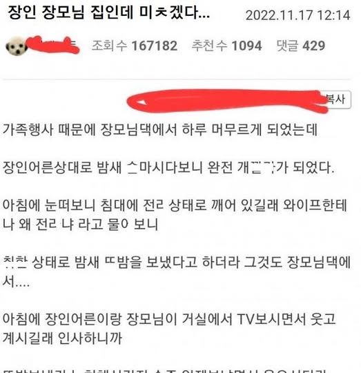 장인장모님집인데 미ㅊ겠다는 유부남...
