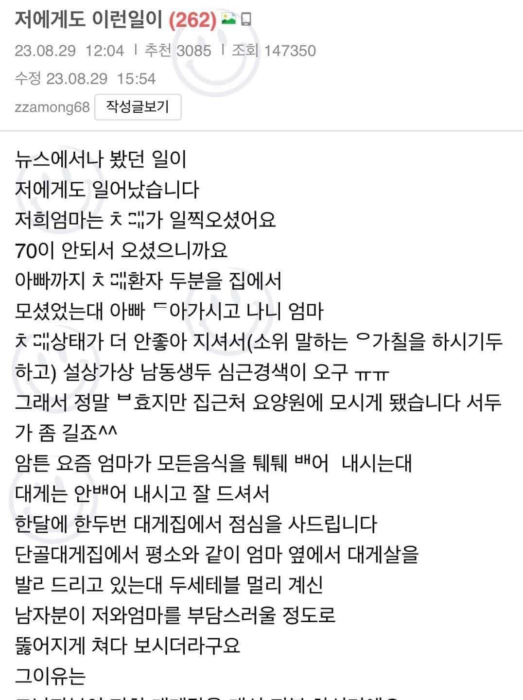 치매걸린 엄마랑 대게 먹는데 남자가 뚫어지게 쳐다본 이...