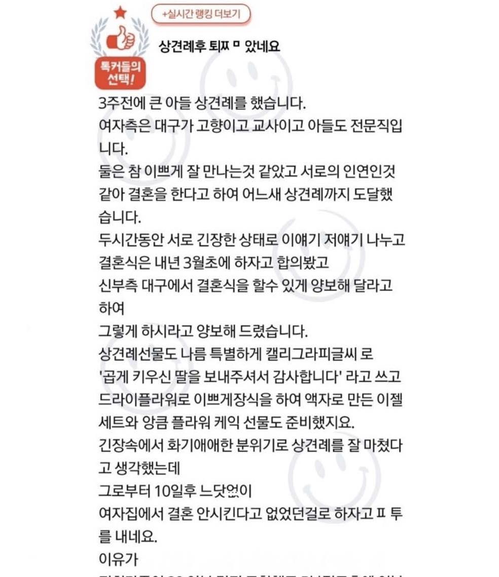 상견례후 퇴짜 ㅁ았네요..ㄷㄷ