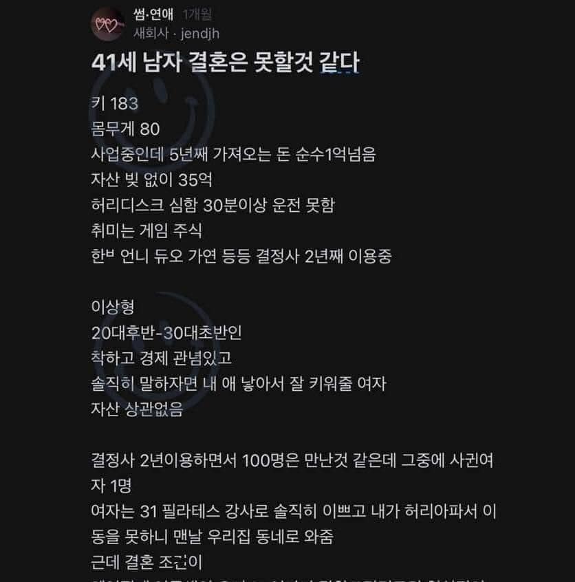자산 35억 보유한 41세 남자가 결혼은 못하는 이유