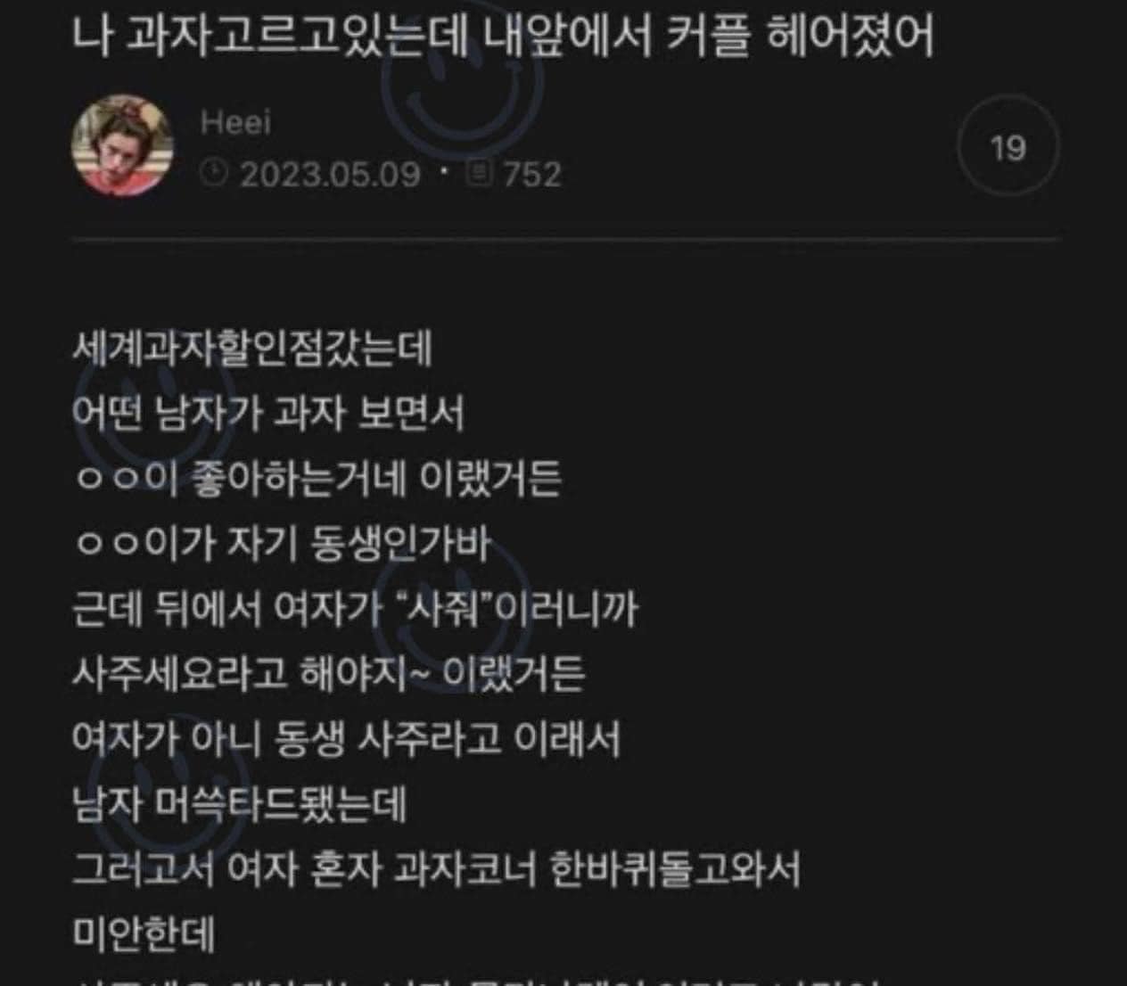나 과자 고르고 있는데 내 앞에서 커플 헤어졌어
