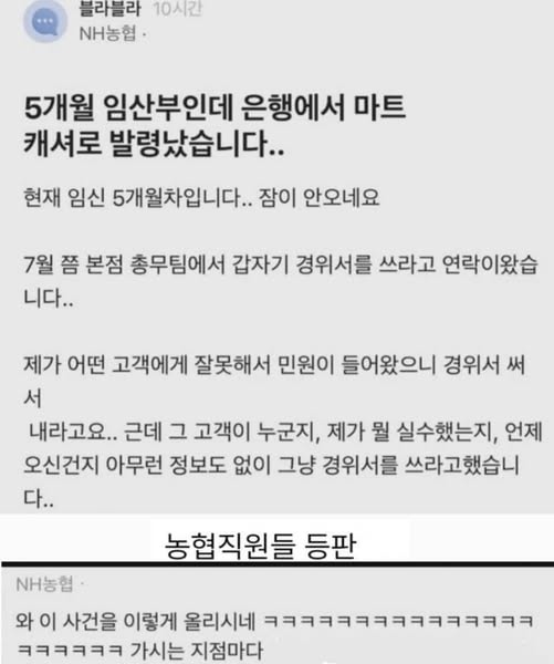 농협 5개월 임산부 캐셔 발령.. 반전 결말ㄷㄷ (+농협직원 등판)