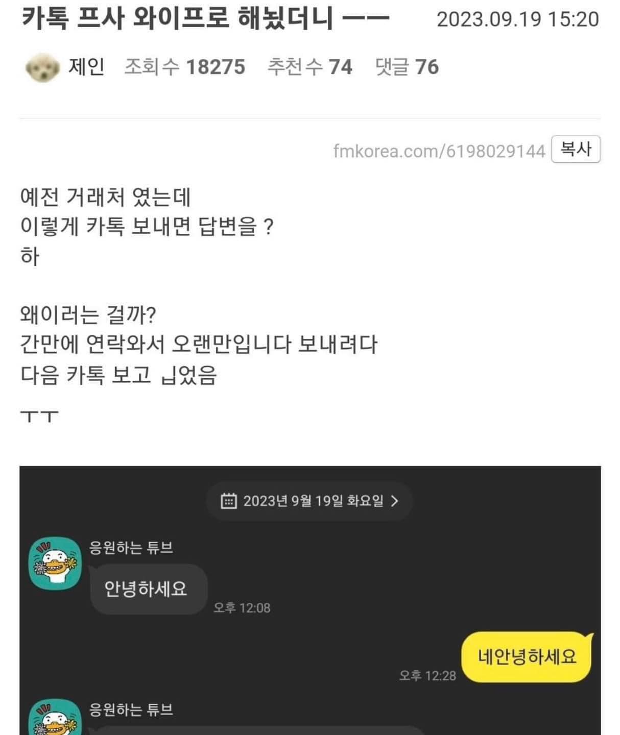 카톡 프사 와이프로 해놨더니 ㅡㅡ
