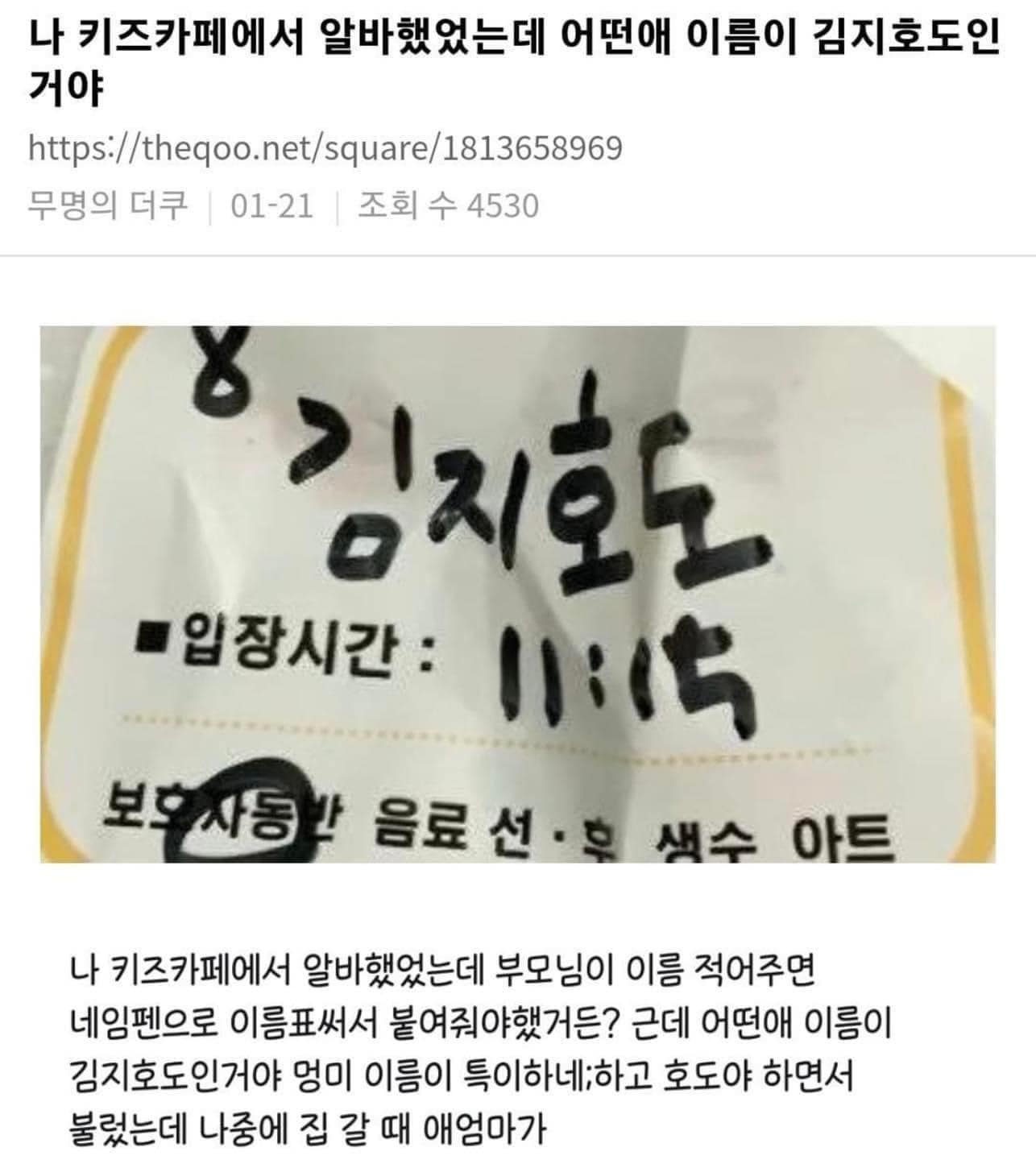 키즈카페 알바하는데 어떤애 이름이 김지호도 인거야