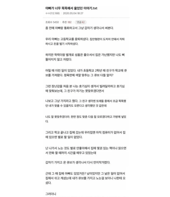 아빠가 너무 똑똑해서 울었던 흙수저 디시인...jpg