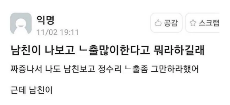 남자한테 철벽쳐놓고 여친생기니 서운하다는 여자