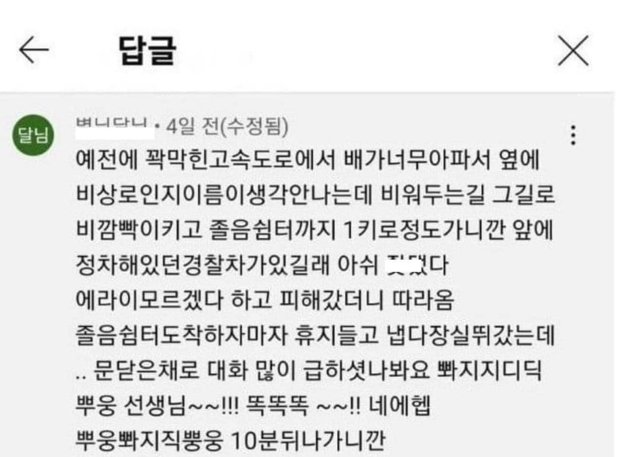 매우 리얼한 고속도로 급똥썰