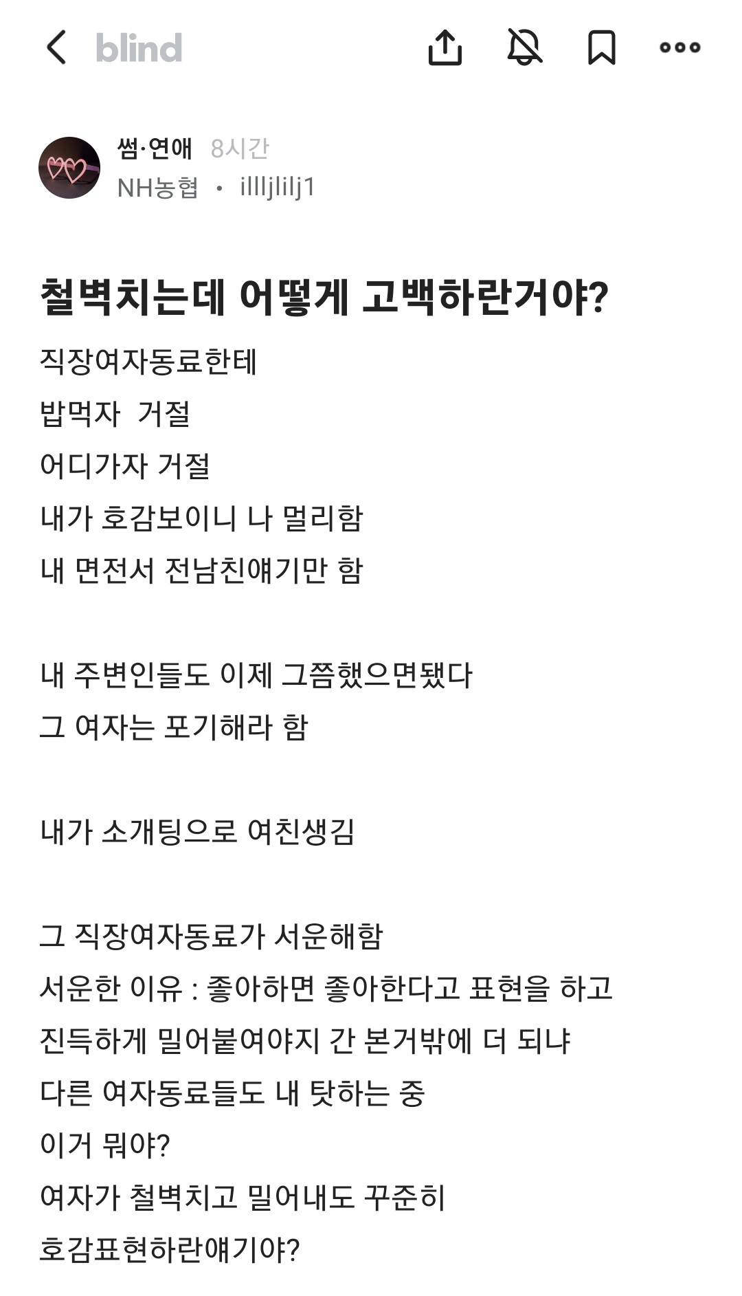 남자한테 철벽쳐놓고 여친생기니 서운하다는 여자